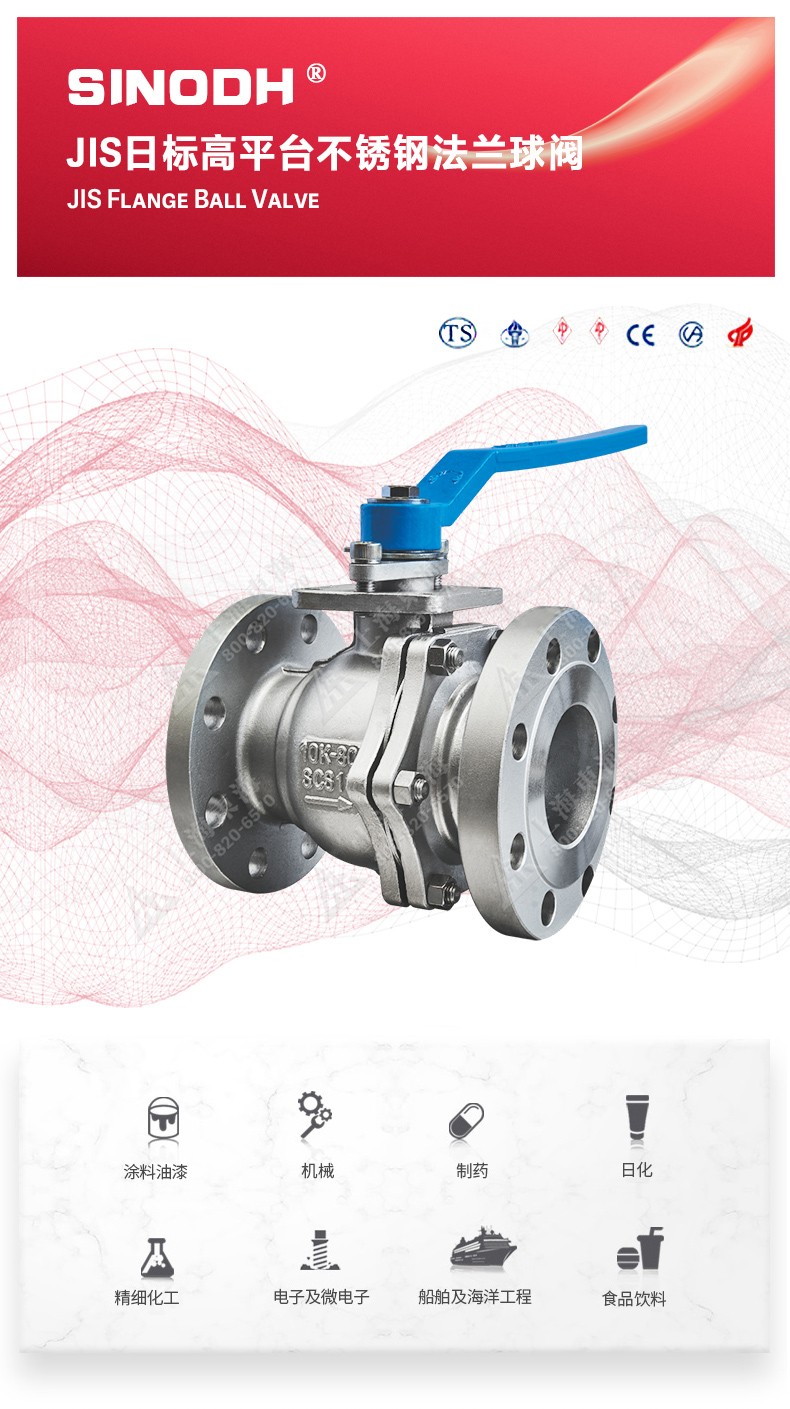 JIS日标高平台不锈钢法兰球阀,为中国NBA压球官方网自主研发生产本产品设计制造标准符合J1 SB2071标准,该产品的球体(密封件)是浮动的,在介质压力作用下,球体能产生-定的位移并紧压在出口端的密封面上,保证出口端密封。适用于水、溶剂、酸和天然气等一般工业介质,也适用于工况恶劣的介质,如氧气、过氧化氢、乙烯等介质。